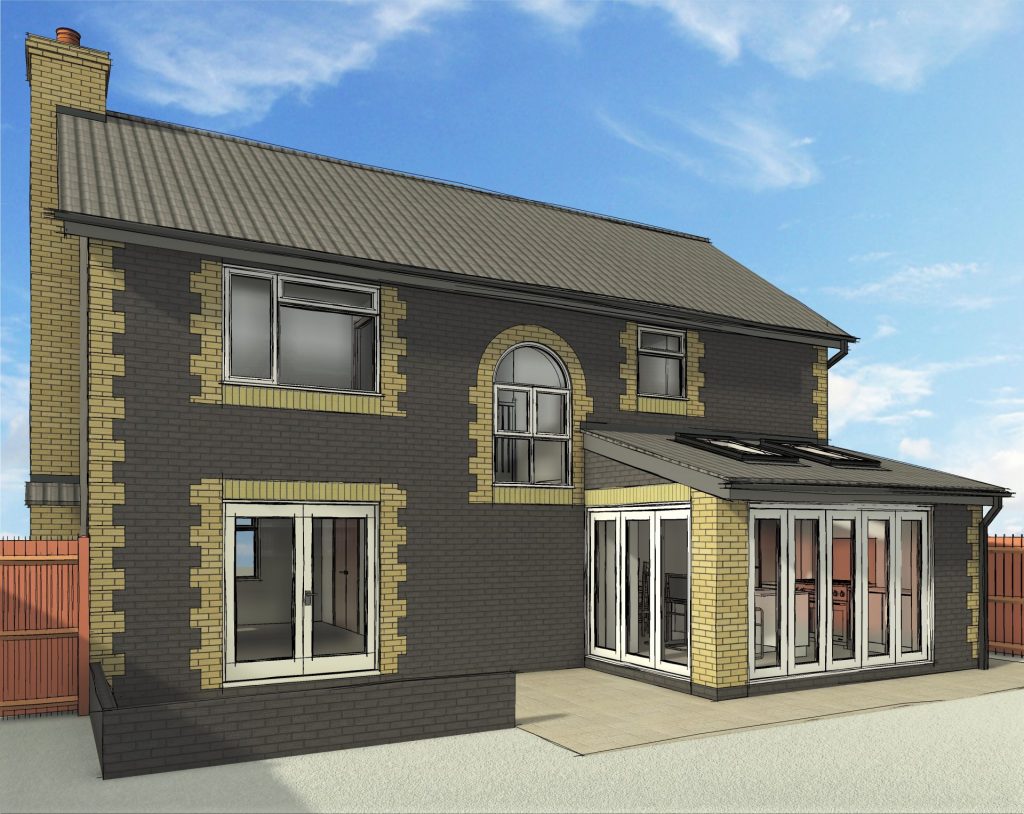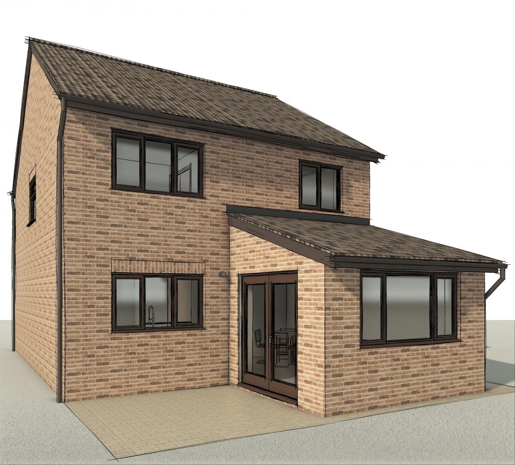 The first project being a single storey rear extension to a property in Chippenham. The space gives the clients bi aspect views of the garden and extends the kitchen to give a large open plan kitchen/ dining and living space. See image above.